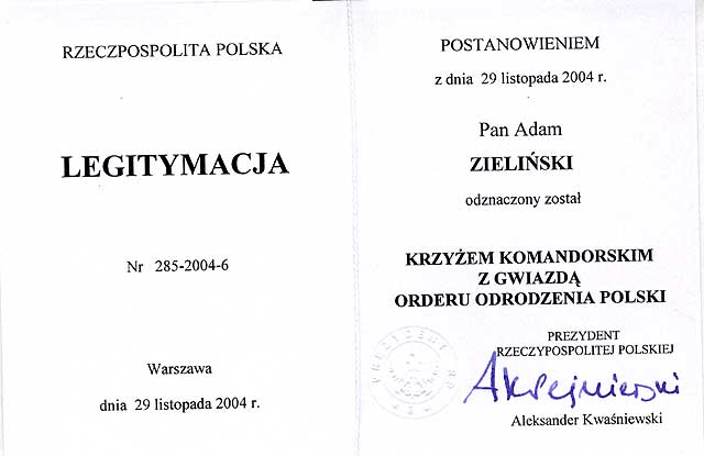 KWAŚNIEWSKIEGO KRZYŻA KOMANDORSKIEGO Z GWIAZDĄ ORDERU ODRODZENIA