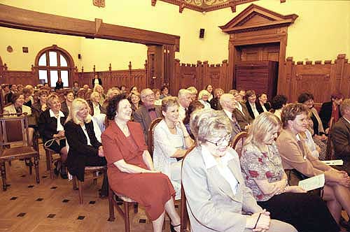 zgromadzona na sali krakowska profesura uniwersytecka, oraz wybitni literaci