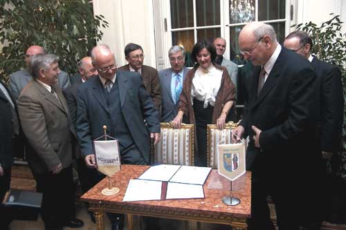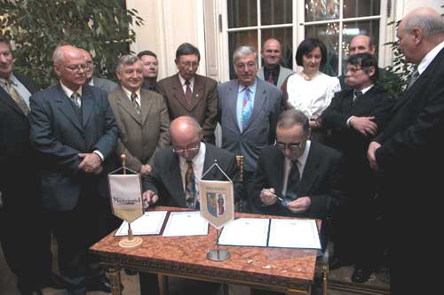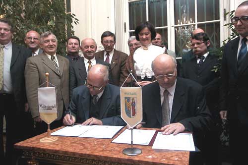 W dniu 14 listopada z okazji prezentacji Regionu Śląska w austiackiej "Wirtschaftkammer"- w Ambasadzie RP w Wiedniu w godzinach wieczornych odbyło się uroczyste spotkanie wszystkich uczestników . Podczas tej uroczystości została podpisana umowa, dotycząca rozpoczęcia współpracy między miastami: Ruda Ślaska (Rzeczpospolita Polska) reprezentowana przez Prezydenta Miasta Pana Andrzeja STANIĘ oraz Zastępcę Prezydenta Teodora HOWAŃCA i Mank (Republika Austrii) wspólnie z gminami turystycznymi przedalpejskiego regionu Melker Alpenvorland, Bischofstetten, Dunkelsteinerwald, Hürm, Kirnberg/M., Oberndorf/M., Ruprechtshofen, Schollach, St. Georgen, St. Leonhard/F., St. Margarethen/S., Texingtal oraz Zelking-Matzleinsdorf reprezentowanymi przez Burmistrza Miasta Mank, Pana Hansa Olivera GODDERIDGE oraz Burmistrza Gminy Texingtal, Pana Herberta BUTZENLECHNERA. Inicjatorem w/w umowy był Pan Marek Zieliński, znany ze swoich udanych projektów dotyczących współpracy regionów Polski i Dolnej Austrii.