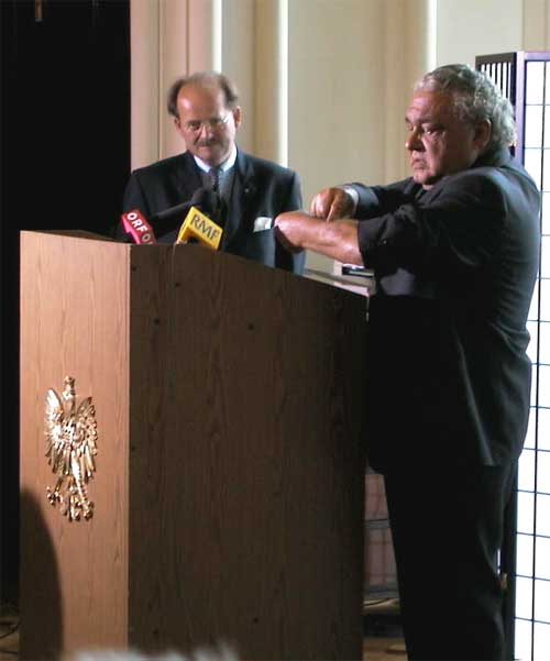 Prof. Karl Stojka - były więzień obozu w Mauthausen wręczył Władysławowi