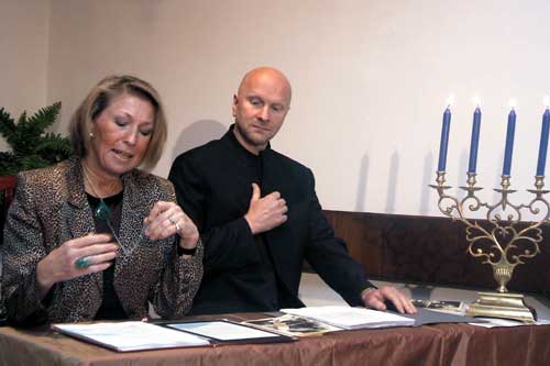 Pan Claus Peter Corzilius. Obaj lektorzy siedzieli przy jednym stole, ustawionym