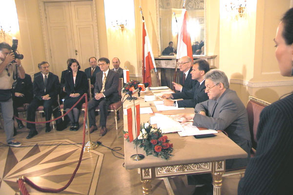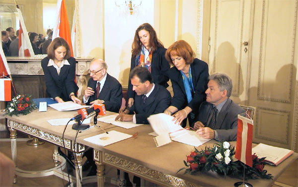 des Dokuments gaben die Minister Bartoszewski und Strasser Interviews