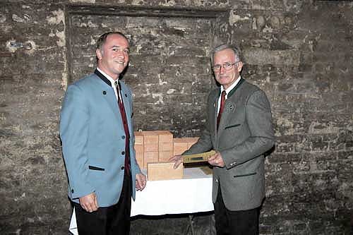 eingemauert. Ziegeln mit den Namen der "Mauerer" schlossen die