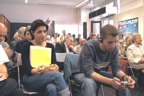 dem Hintergrund der Ausstellung polnischer Rathäuser statt.Vortragende