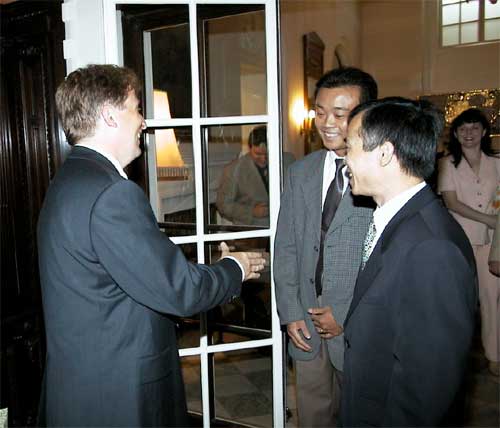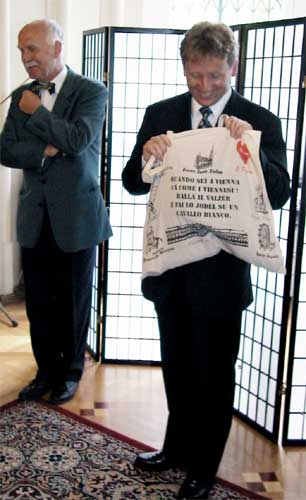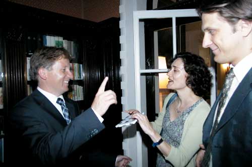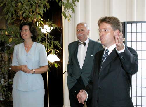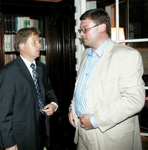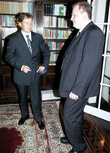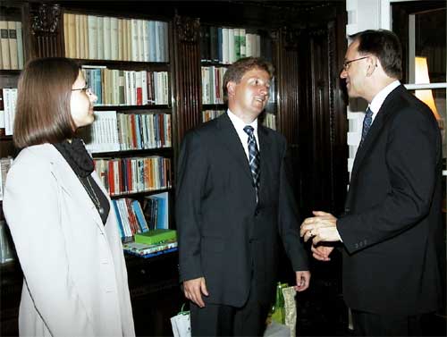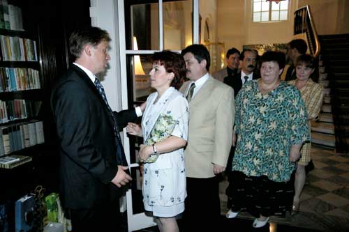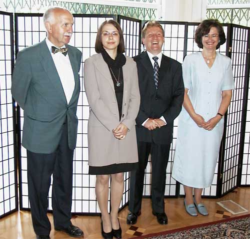 | Am 28. August 2002 fand die Abschiedsfeier von Jarosław Timofiejuk, 1.Botschaftssekretär, in der Botschaft der Republik Polen in Österreich statt. Seine Nachfolgerin ist Frau Ewa Martyna, 2.Botschaftssekretär. Botschafterin der Republik Polen Prof. Dr. hab. Irena Lipowicz bedankte sich herzlich bei Herr Jarosław Tomofiejuk für seine aktive und professionelle Arbeit in der Botschaft der Republik Polen. Jarosław Timofiejuk erzählte über sich: |