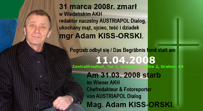 W imieniu Rodziny kochanego Zmar³ego oraz cz³onków redakcji "AUSTRIAPOL Dialog - Magazyn dialogu miêdzykulturowego" dziêkujê wszystkim, którzy wziêli udzia³ w ceremonii pogrzebowej.